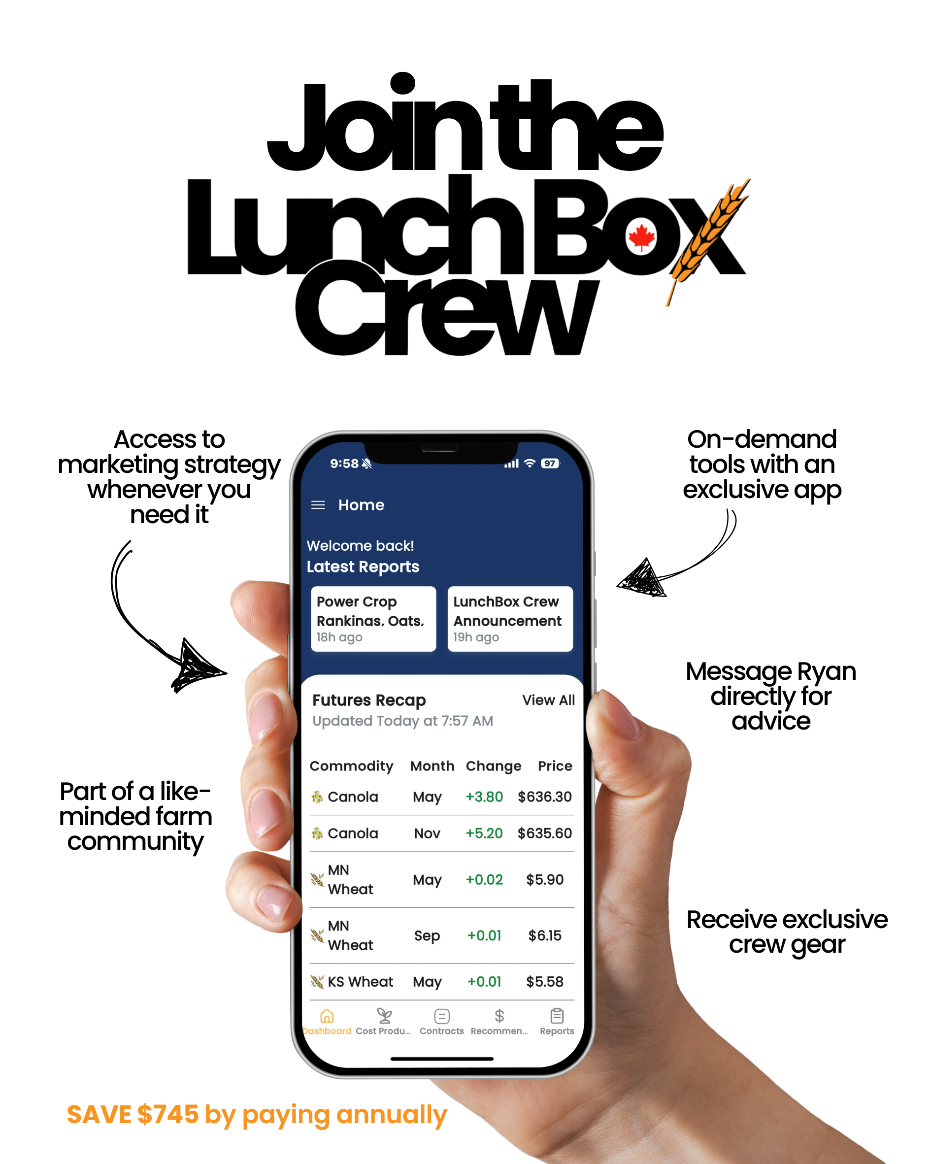 “Thanks to the Lunch Box Crew for helping to provide information and confidence to execute our grain marketing plan. All of our grain is in the elevator and we finished with a $13.94/bu avg on canola and a $9.02/bu avg on wheat”