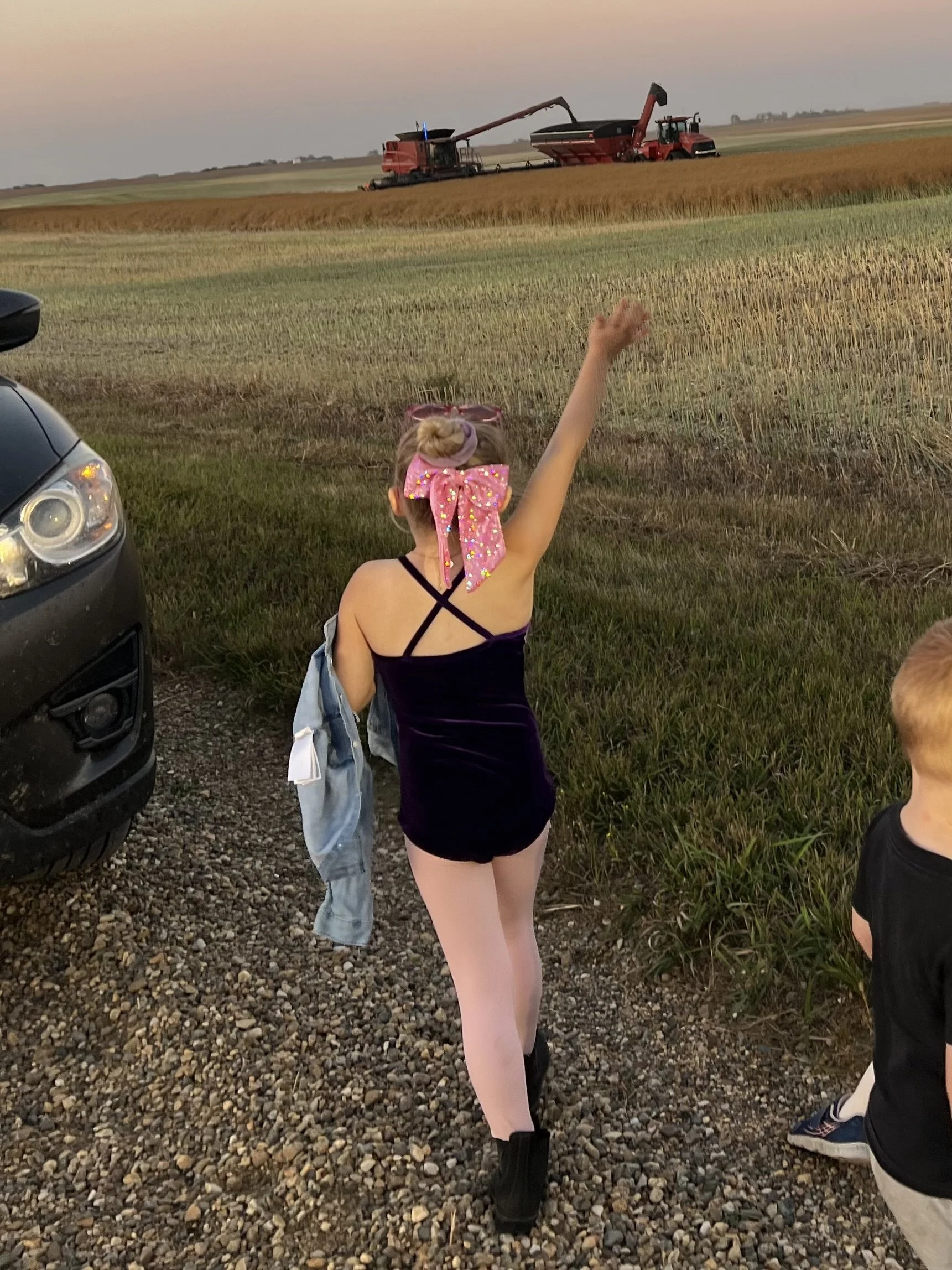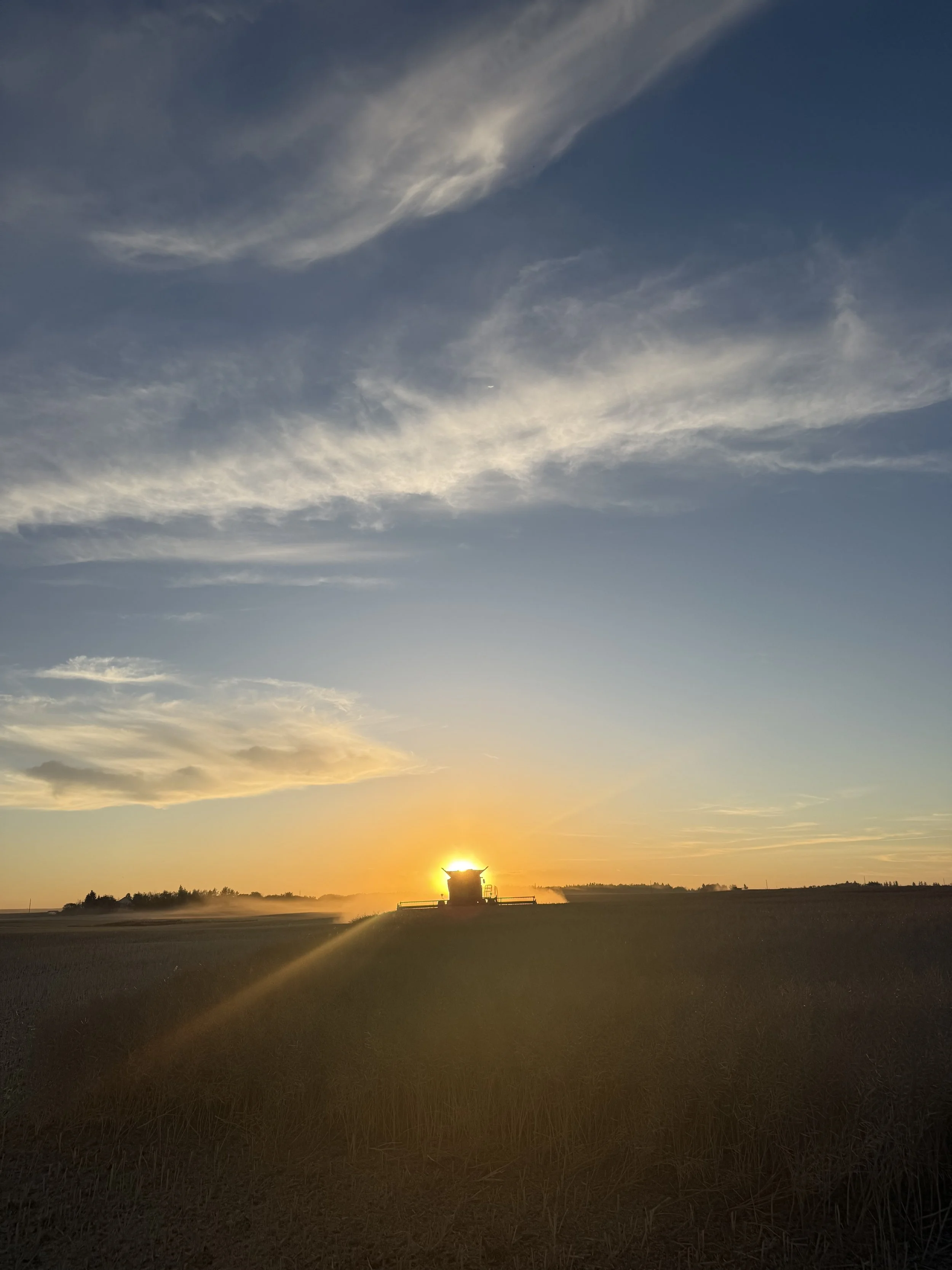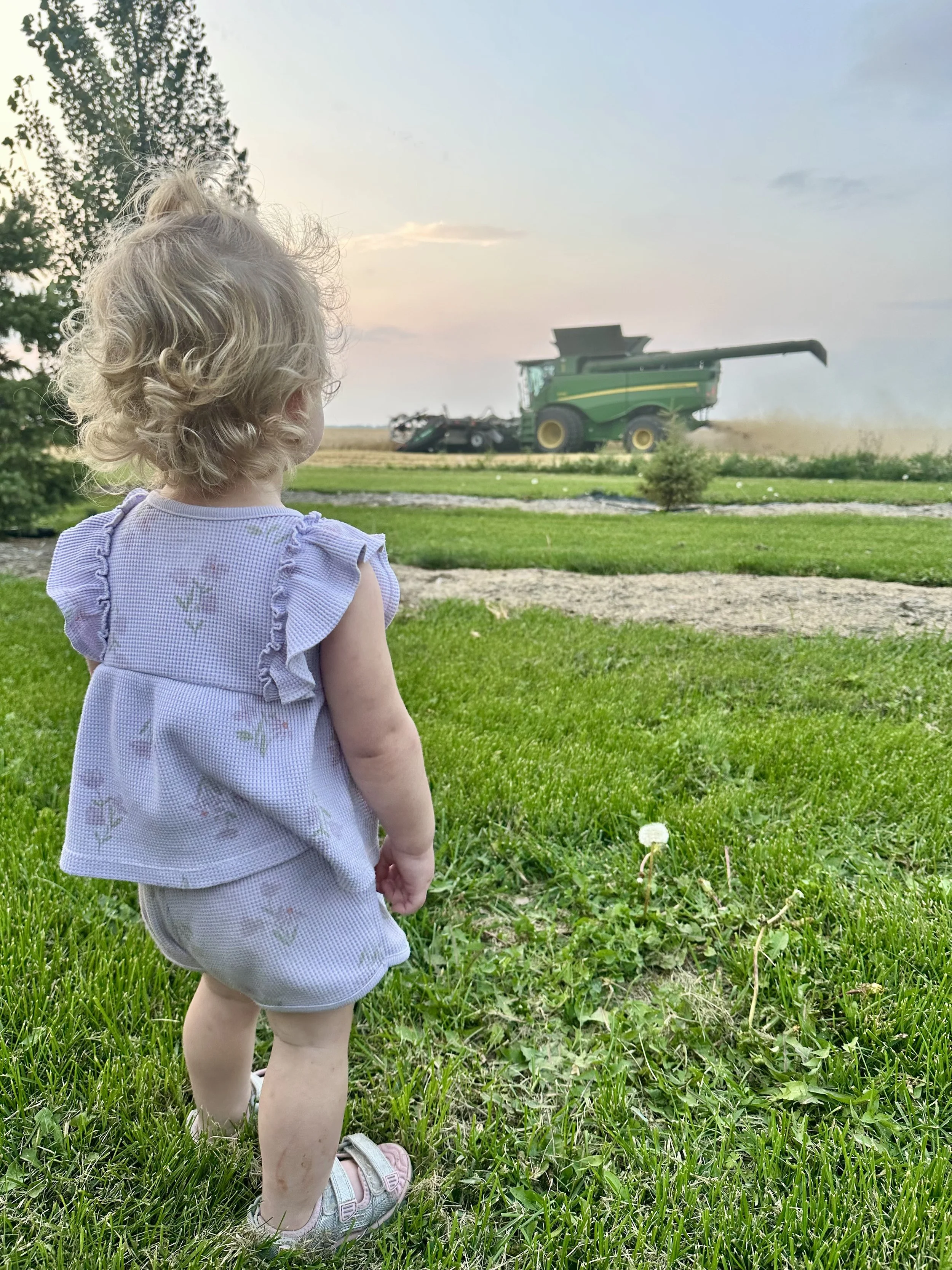 This photo captures a moment that represents what harvest means to our family. Our youngest daughter stands in the yard watching her dad bring in the crop with the combine, completely in awe of the machine and the work being done. For us, harvest isnāt just about long hours in the field. It is also about raising the next generation to understand and appreciate where our food comes from and the hard work it takes to grow it.