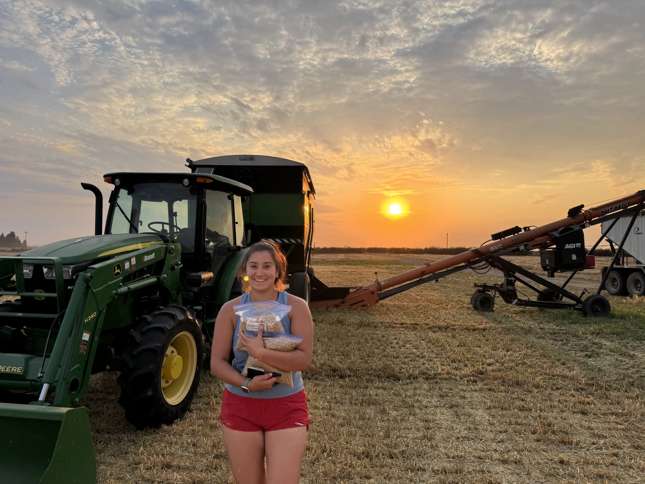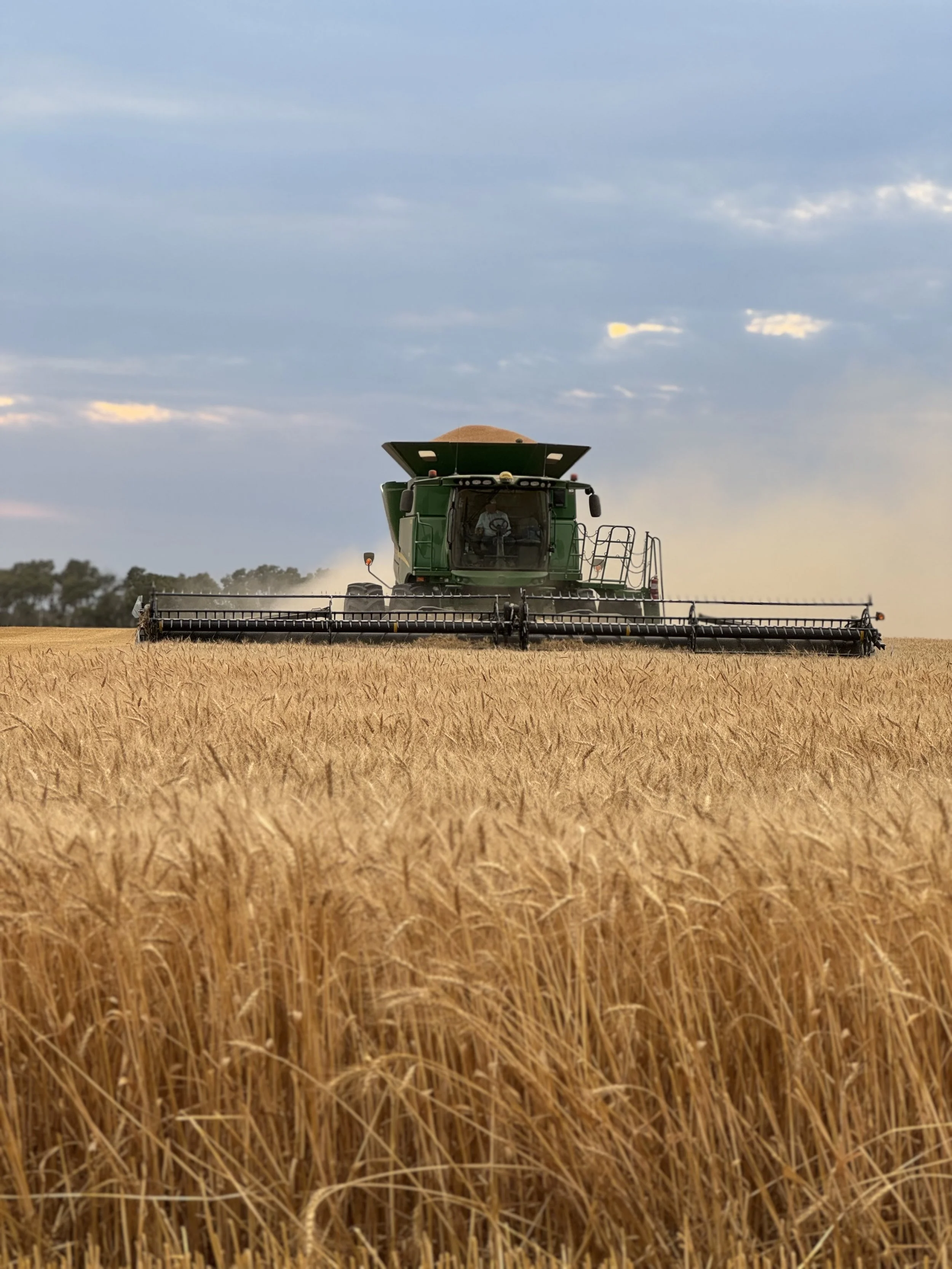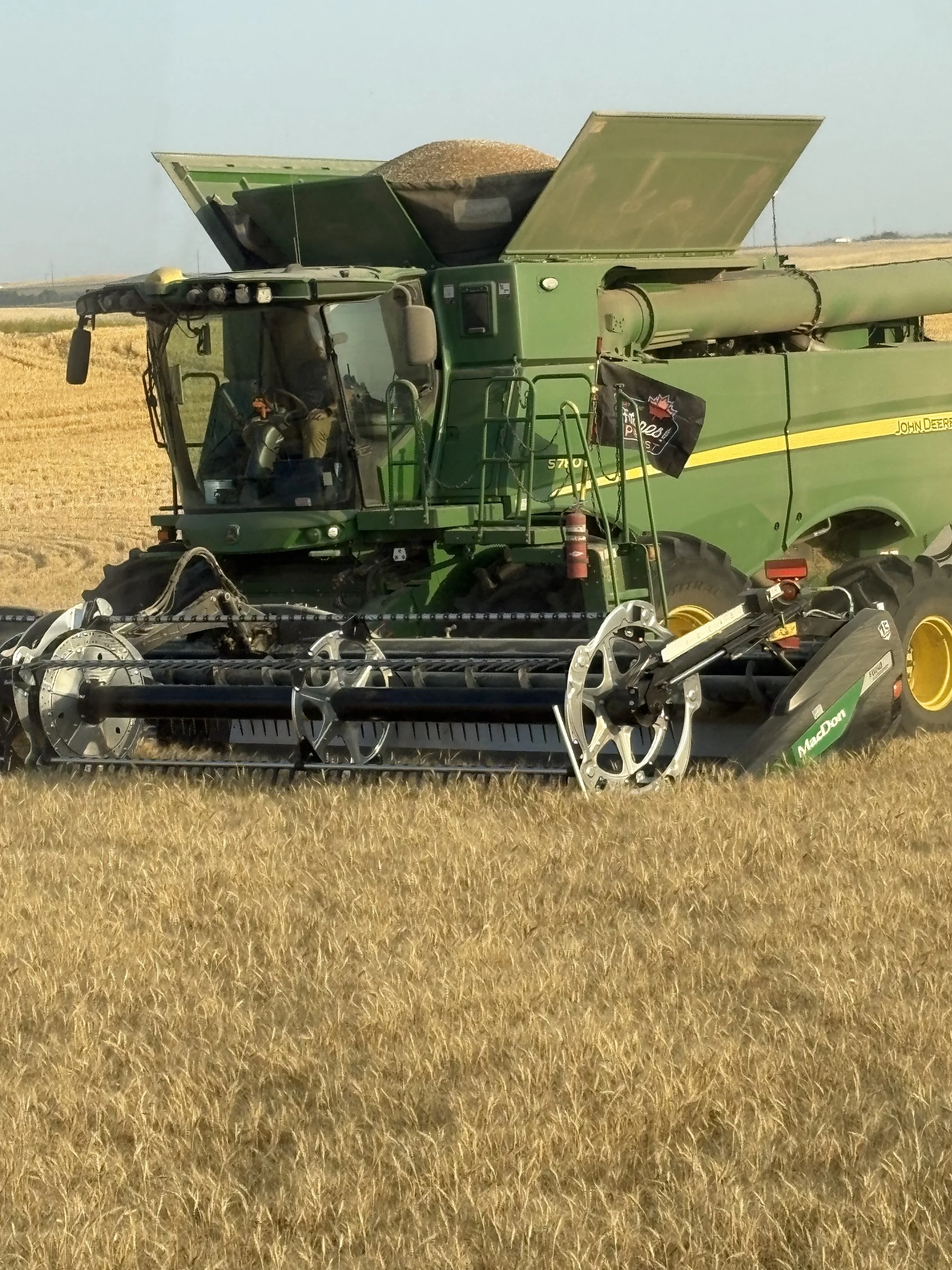 This photo captures a moment that represents what harvest means to our family. Our youngest daughter stands in the yard watching her dad bring in the crop with the combine, completely in awe of the machine and the work being done. For us, harvest isnāt just about long hours in the field. It is also about raising the next generation to understand and appreciate where our food comes from and the hard work it takes to grow it.