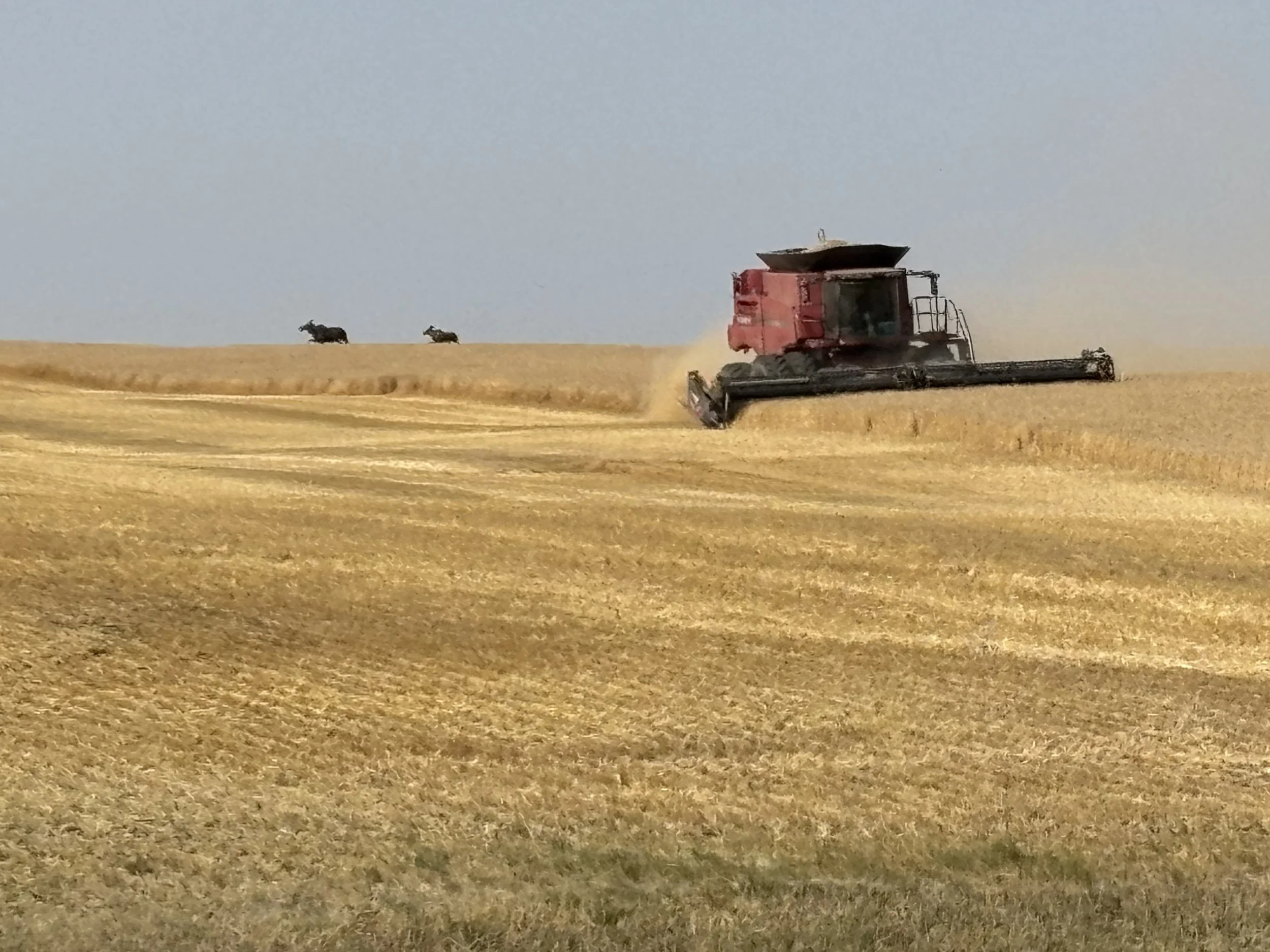 Farmer from Erskine, Alberta. Grabbed a cool picture of a cow moose and her calf running through the wheat field behind the 8240. Picture is taken from a distance with a phone so itās dusty and low quality but still a cool picture.